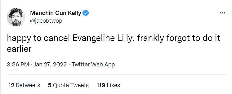 Tor.com writer Jacob Clifton wrote, “happy to cancel Evangeline Lilly. frankly forgot to do it earlier.”