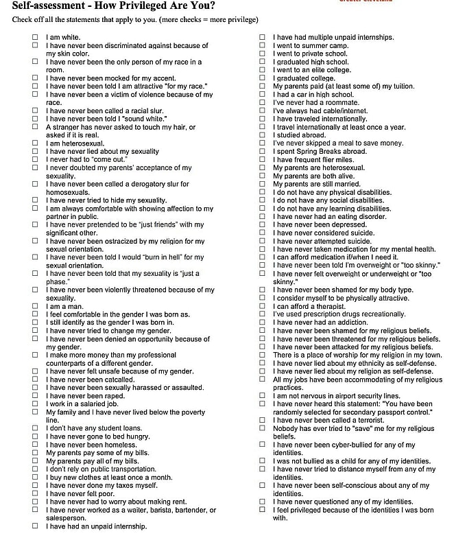 After next completing a “white privilege checklist”, participants are then instructed to complete an exercise called “How To Tell If You Have White Fragility,” which teaches that the belief in statements such as “I am a good person, I can’t be racist” and “I was taught to treat everyone the same” is evidence of internalized racism and white fragility.