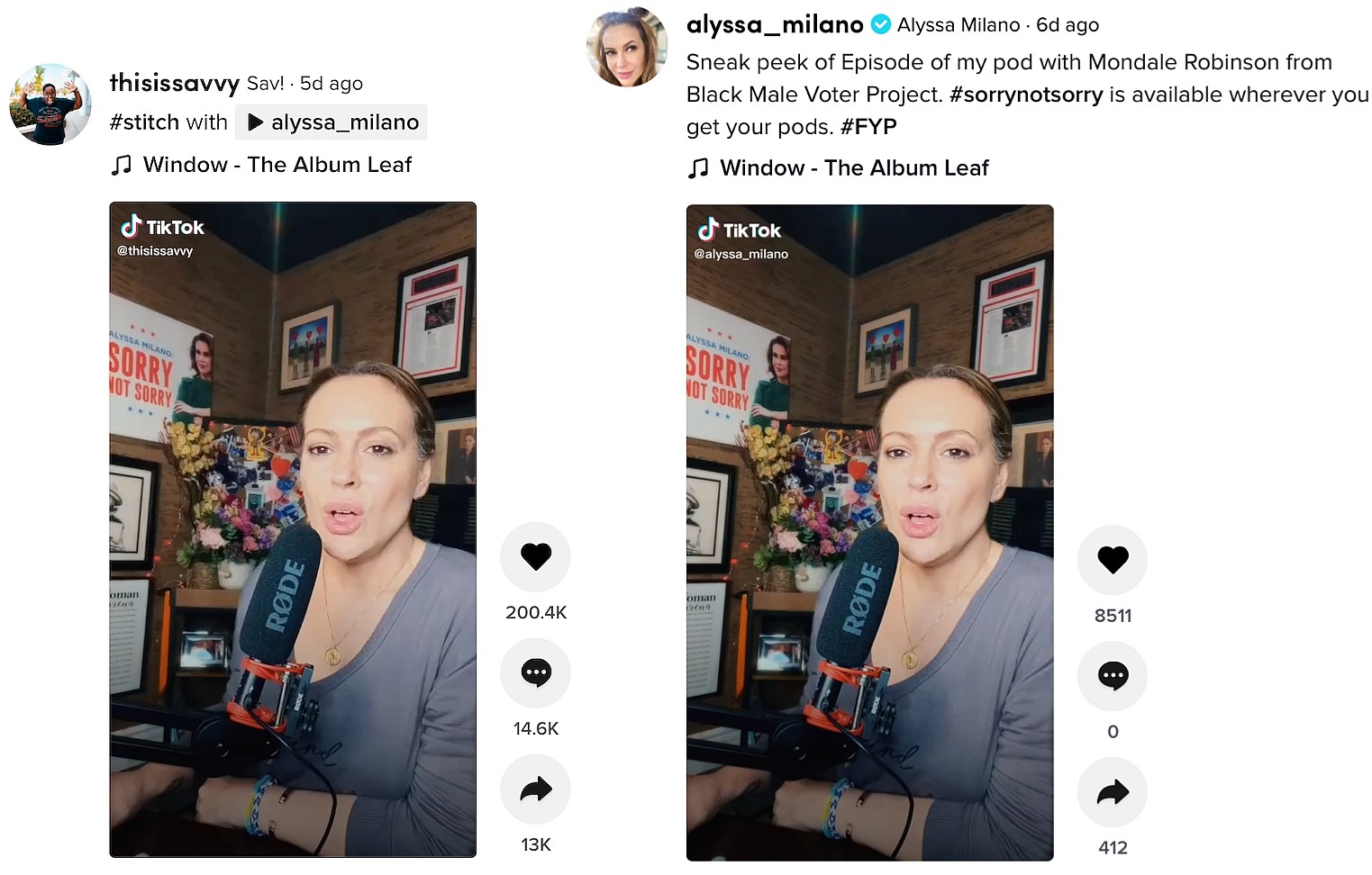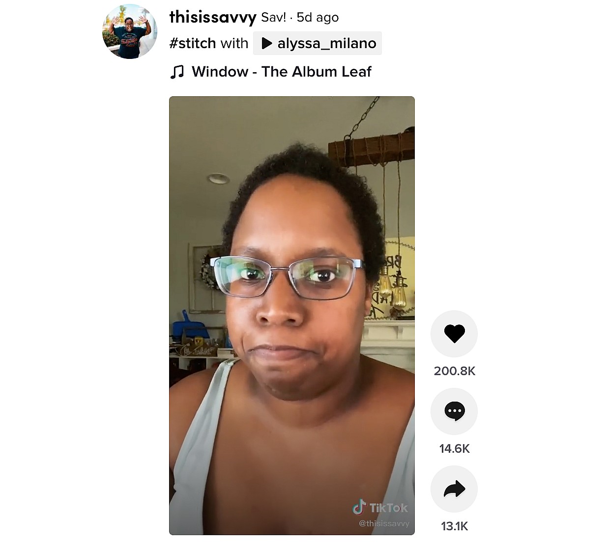 As of this writing, Savannah Edwards’ response to Alyssa Milano’s TikTok video has been reproduced 932.9k times, has over 200k likes and has been shared more than 13k times — not to mention over 14.6k TikTok users have commented on it.