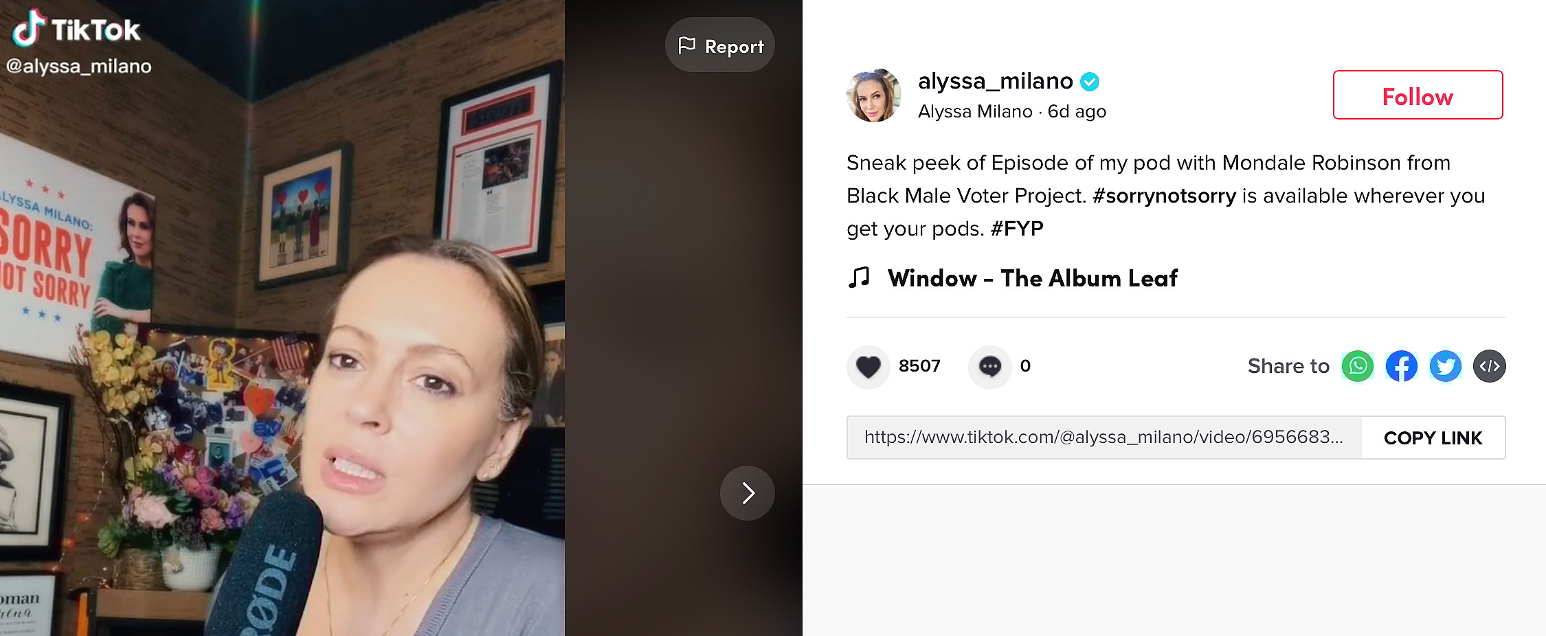 @alyssa_milano Sneak peek of Episode of my pod with Mondale Robinson from Black Male Voter Project. #sorrynotsorry is available wherever you get your pods. #FYP