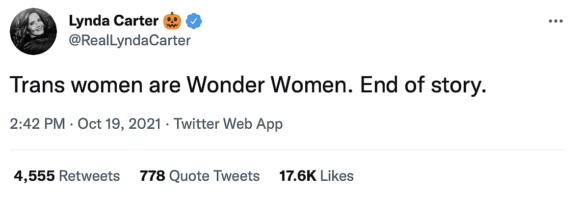 “Trans women are Wonder Women. End of story,” the actress fervently asserted on Twitter.