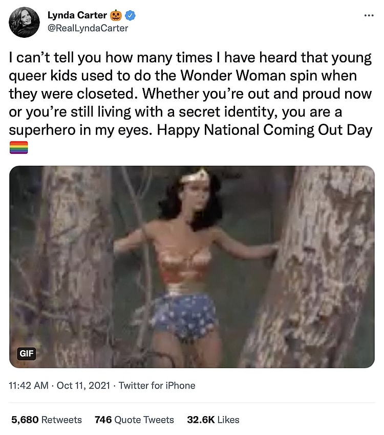 “I can’t tell you how many times I have heard that young queer kids used to do the Wonder Woman spin when they were closeted,” read a post shared by the actress on “National Coming Out Day”.
