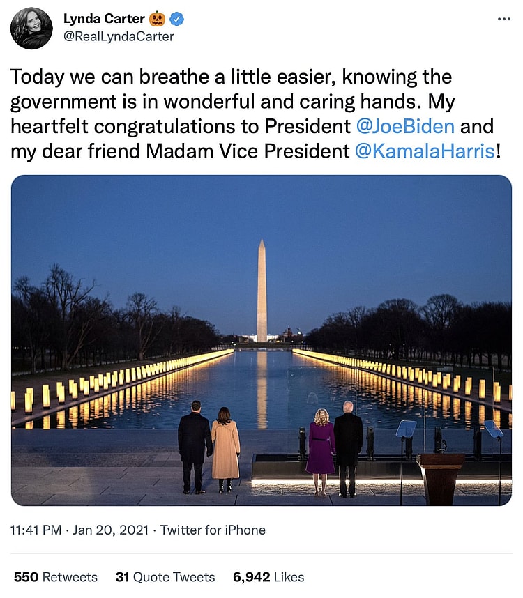 “Thinking of the amazing Madame @VP on her birthday,” wrote Carter, adding, “She is every bit as bold, smart, and kind as you’d expect.”