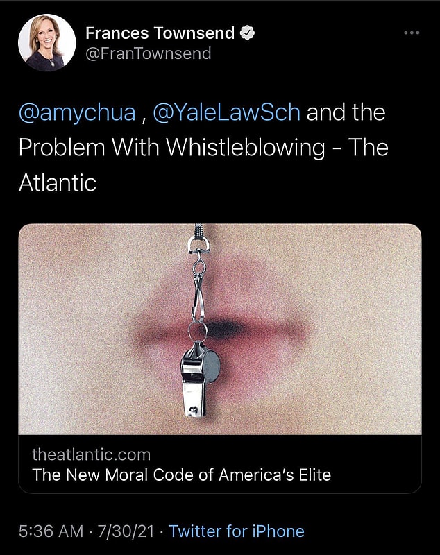 Townsend even shared a recent article from The Atlantic discussing, in her words, “the problem with whistleblowing” just days after the lawsuit was made public.