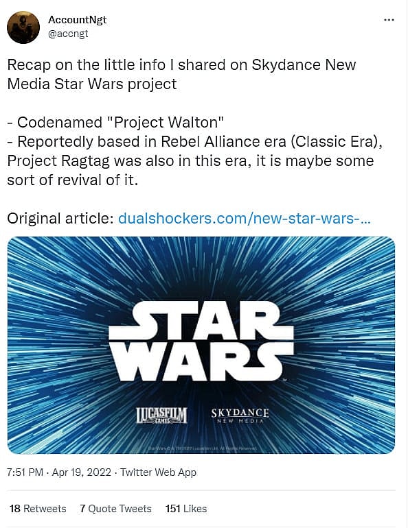 Allegedly, the new Star Wars game — dubbed “Project Walton” and a revival of the canceled Project Ragtag — will be set during the original trilogy, also known as the Classic or Rebel Alliance era.