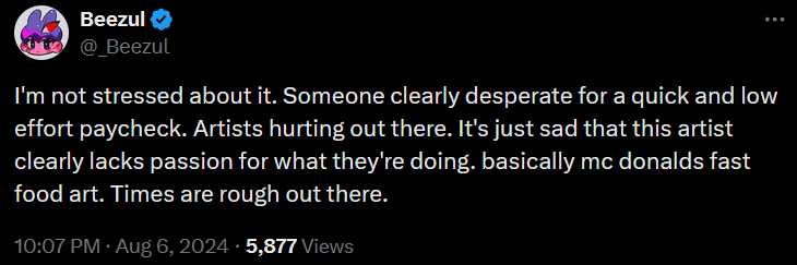 This prompted another X user to ask if the individual artist was more to blame than the AAA company. Beezul proceeded to explain how he understood all too well.