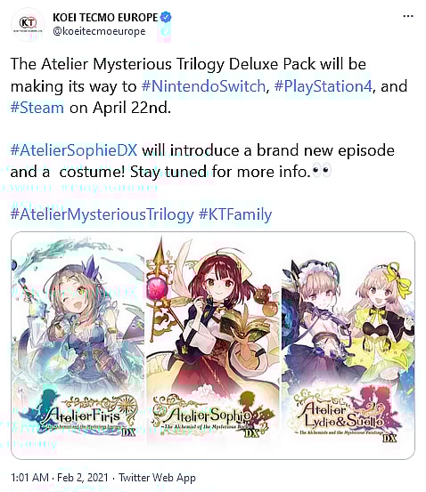 Fans will have the chance to experience the entire Mysterious storyline when the Atelier Mysterious Trilogy releases on April 22nd, 2021.