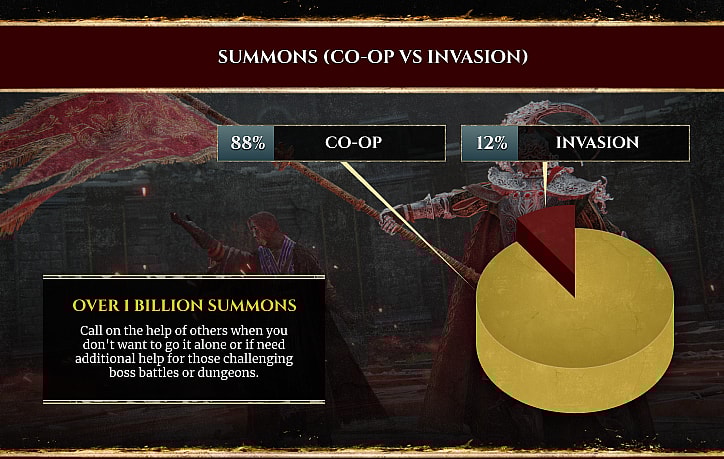 Players have also summoned other players over 1 billion times- 88% of the time to engage in jolly co-operation, and only 12% of the time accepting the challenge of an invasion.