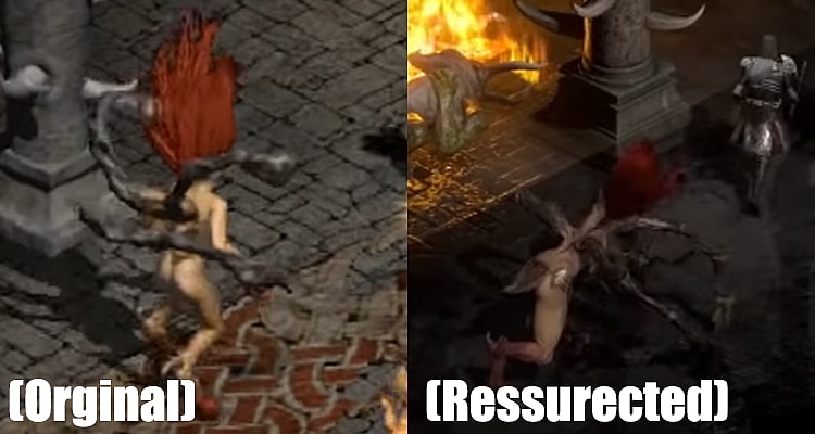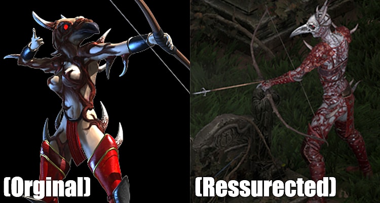 The Blood Raven enemy has also been altered. In the original release, Blood Raven wore a small loincloth, thigh high boots, and a revealing top, but in Diablo II: Resurrected, her body is now covered in what appears to be a system of veins.