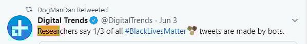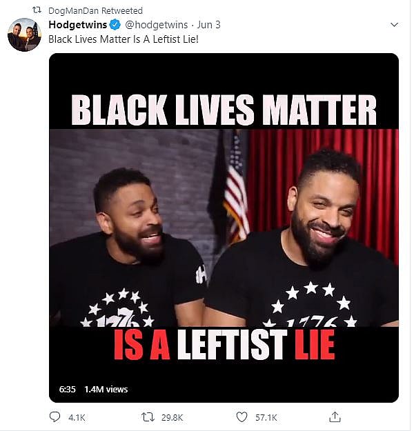 While supportive of the efforts to speak out against ongoing and wanton police brutality, Dan also retweeted videos critical of the ‘capital B’ Black Lives Matter movement, research questioning the group’s massive amount of support on social media presence, and criticized the ongoing acts of “rioting, looting, and burning buildings down.”