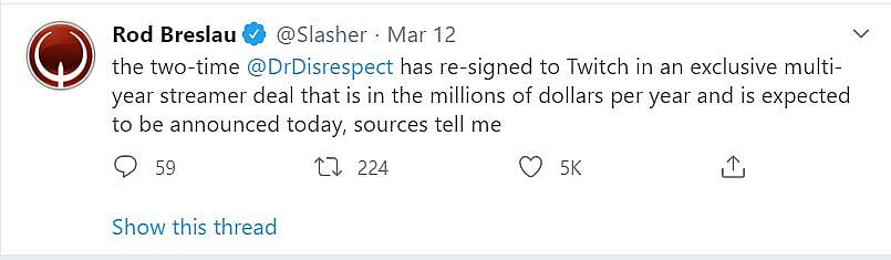 The ban was quite surprising given that it had recently been reported by Rod Breslau that Dr Disrespect had re-signed to Twitch in an “exclusive multi-year streamer deal.”