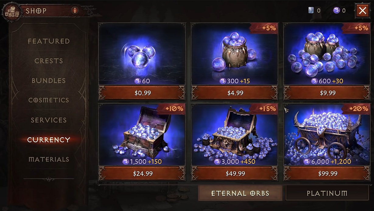 Likewise, Legendary Crests can also be purchased with Diablo Eternal’s premium currency, Eternal Orbs.