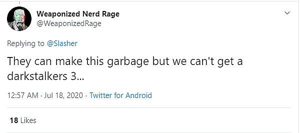 Weaponized Nerd Rage added, “They can make this garbage but we can’t get a darkstalkers 3…”
