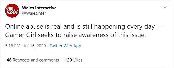 Finally, they concluded, “Online abuse is real and is still happening every day — Gamer Girl seeks to raise awareness of this issue.”