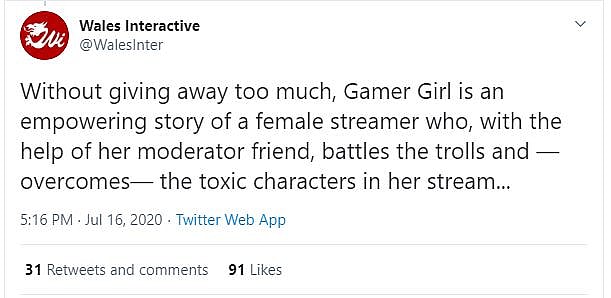 According to publisher Wales Interactive, Gamer Girl was made in an attempt to “raise awareness” of online abuse.