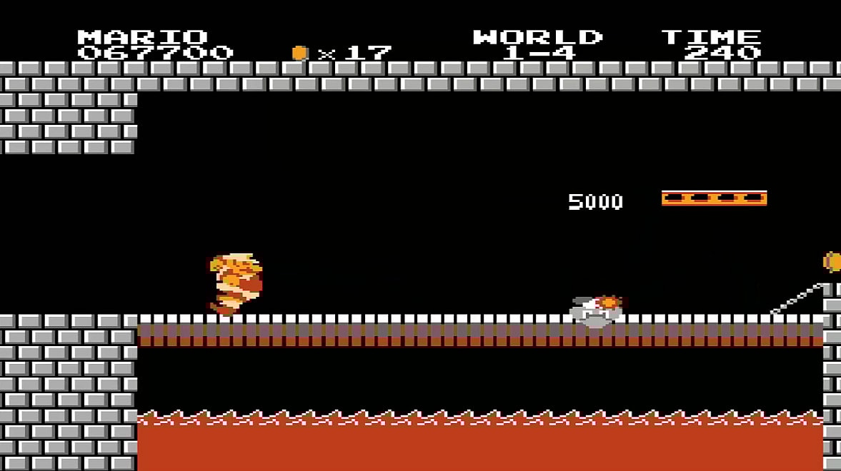 Mario prepares to confront Bowser in Super Mario Bros. (1985), Nintendo