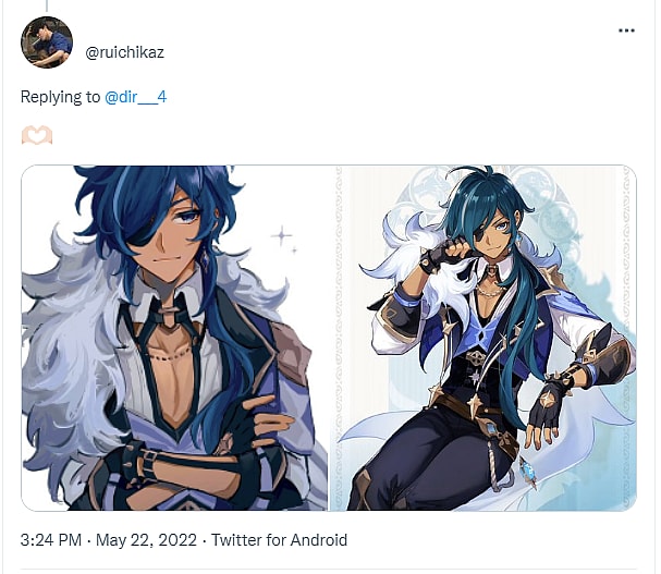 Some of the outraged even took to editing @dir___4’s work to darken Kaeya’s skin tone, such as @WHERETHEMPANADA.