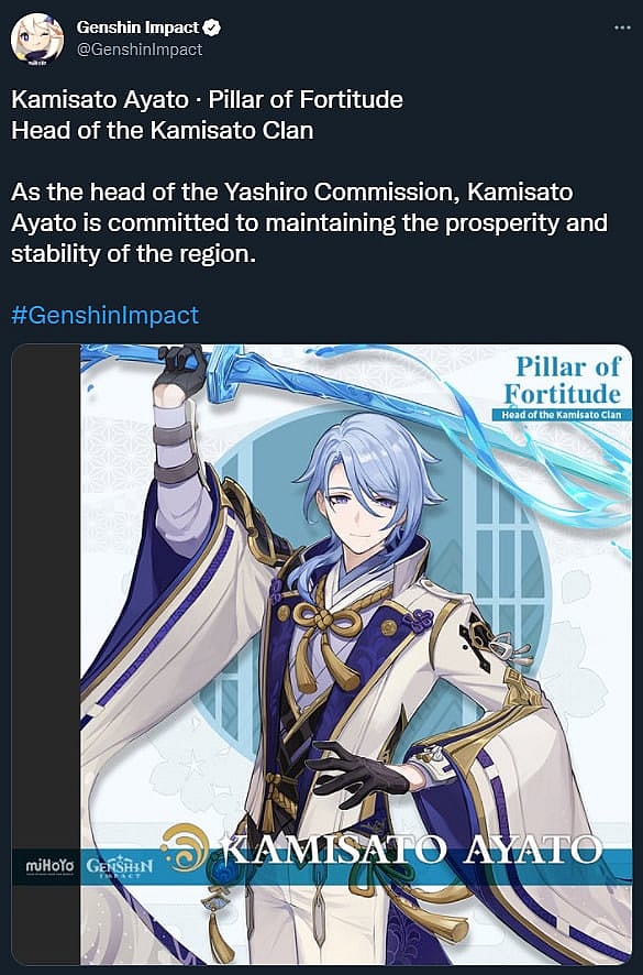 Revealed by miHoYo on February 4th alongside the content coming to to Version 2.5 and Yae Miko, Kamisato Ayato is a Hydro character and commander of the Yashiro Commission, a group charged with maintaining Inazuma’s shrines, festivals, and cultural events.