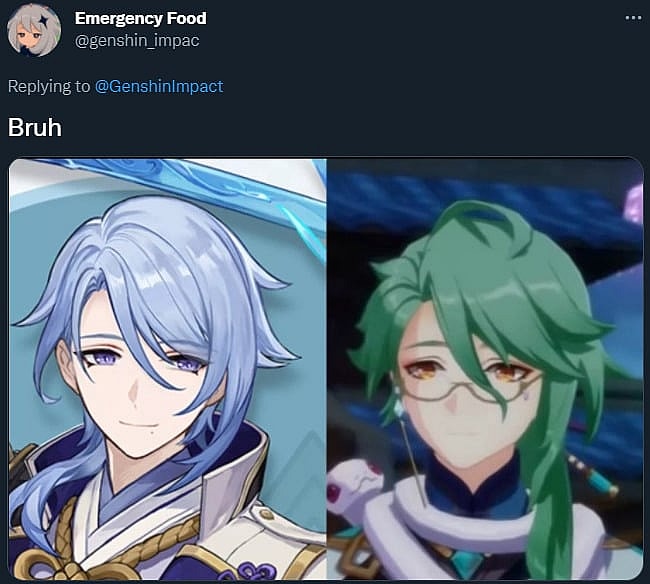 Emergency Food merely tweeted “bruh” in reply to the official announcement, as they showed a side-by-side of both characters.