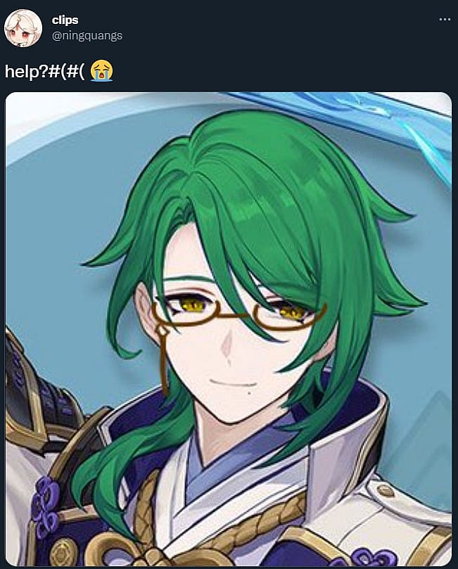 @Ningquangs made some small edits to Ayato to further drive home the comparison, revealing how adding glasses and change of hair and eye color can easily make Ayato look strikingly similar to Baizhu.