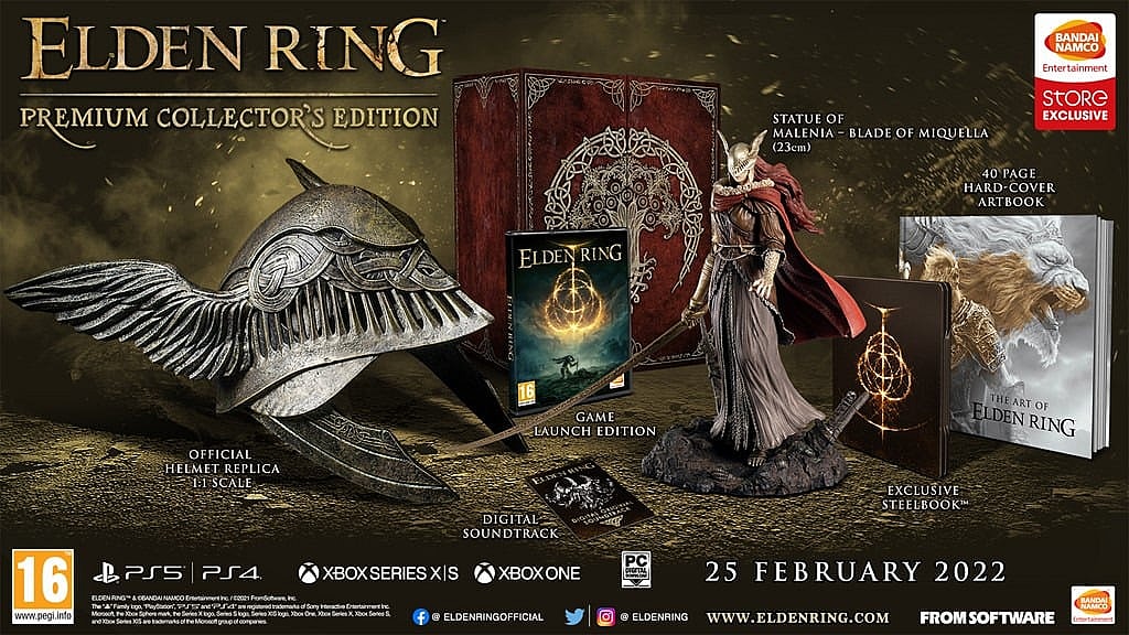 Along with a 40 page hard-cover art book, digital soundtrack, a 9″ statue of Malenia, Steelbook, game, and box (all in the standard Collector’s Edition), the Premium Edition features a 1:1 replica helmet- all for $259.99 USD.