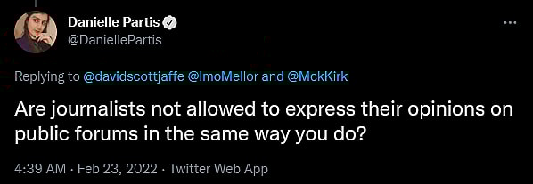 “Are journalists not allowed to express their opinions on public forums in the same way you do?” questioned Partis.