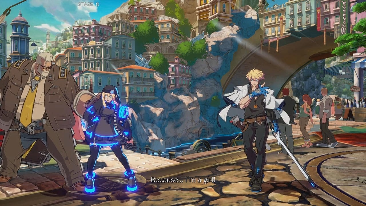 Though the subject is put to the side as Bridget continues to advance through their opponents, it is brought up once again upon completion of her final arcade mode bout against series protagonist Ky Kisuke.