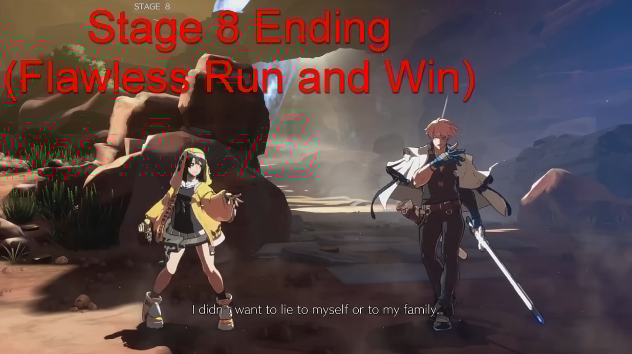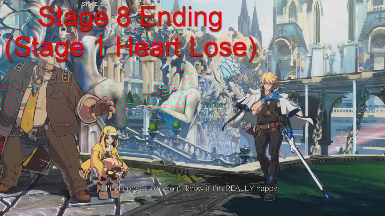 If players lost a round in Stage 7, the Stage 8 ending is the aforementioned “Because… I’m a girl!” line of dialogue. If they lost a round in Stage 8 itself, Ky notes Bridget seemed hesitant, and asked if he was distressed. Bridget admits he is conflicted. “I just don’t know if I should keep living like this.”