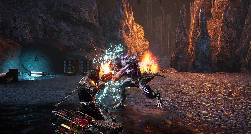 Most of its cutscenes are just Grave walking through a door and pointing a gun at the camera, and because Grave doesn’t really talk, almost all of its dialogue is one-sided and conveys only the most basic of information.