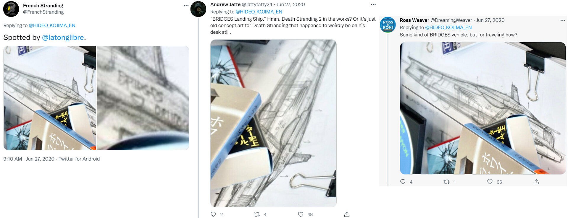 Fans would have a break in June 2020, as Kojima tweeted a series of obscured concept art while working with art director Yoji Shinkawa [1, 2, 3].