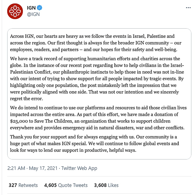 Related: IGN Posts Statement Clarifying Their Support For Palestine