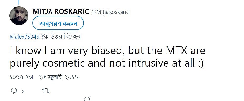 However, it appears that Roskaric only received less than a handful of negative responses, far from the outpouring of harassment Kotaku claims he received. Upon reading Kotaku’s claim, Reddit user /u/sodiummuffin searched Twitter for “tweets mentioning Roskaric’s username since before the game was released,” finding only one negative exchange. Roskaric reassured a player concerned with the presence of microtransactions in Youngblood that the microtransactions would be purely cosmetic; upon the game’s release, and upon discovering that the microtransactions also included gameplay boosters on launch, the player responded with an image of rap artist Tyler, the Creator which read “So that was a fucking lie.” (Archive link: http://archive.is/qDceC)