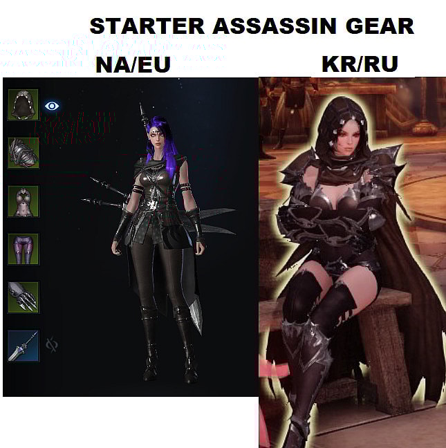 Likewise, the Assassin lost her thigh-high boots and cleavage in her starter gear, with only her arms being exposed in the censored versions: