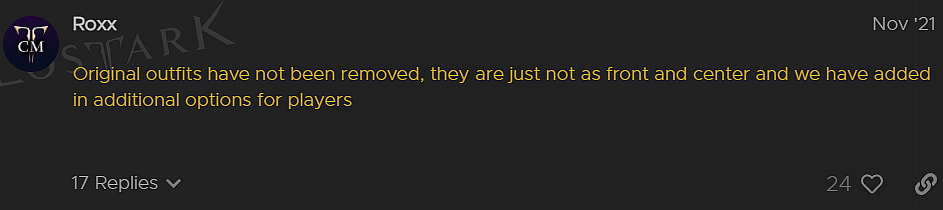 When a number of these censored outfits were first discovered during the game’s 2021 NA/EU beta test, community Manager Roxx claimed to concerned users that the “original outfits have not been removed, they are just not as front and center and we have added in additional options for players.”