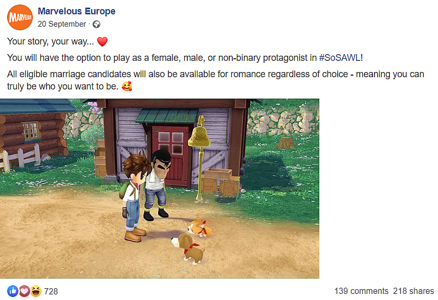 Announced earlier this month on Facebook, Marvelous Europe revealed the news. “Your story, your way… You will have the option to play as a female, male, or non-binary protagonist in #SoSAWL!”