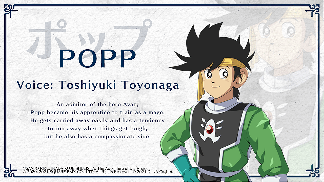 Popp is voiced by Toshiyuki Toyonaga. He’s an apprentice mage to Avan.