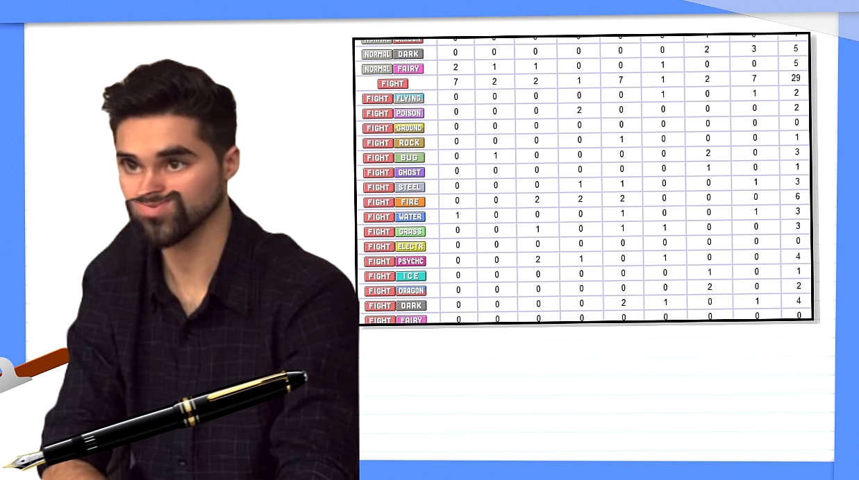 He has discussed overall rankings, capabilities, and flaws of various Pokémon Types in prior YouTube videos- even Type combinations not currently in the games. Glick has also proposed fixes for some of the games’ most flawed Types- Bug and Ice– along with hypothetical alterations to the games’ battle mechanics such as Pokémon wielding five moves at a time rather than four.