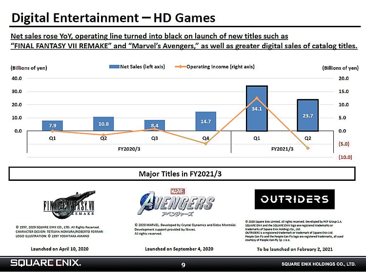 As noted by industry commentator @DomsPlaying, the loss on Marvel’s Avengers was so severe that despite reporting how both the “HD Games segment recorded higher sales” and Square Enix’s overall operating income had “nearly doubled,” mostly thanks to subscriber activity within the Final Fantasy XIV and Dragon Quest X MMOs, the company ultimately “returned to an operating loss, on lower-than-expected results for Marvel’s Avengers not being able to offset higher costs.”