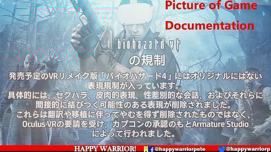 The video also claims “These were not unavoidably removed as part of the translation or porting process but were done by Armature Studio at the request of OculusVR and with the approval of CAPCOM.”