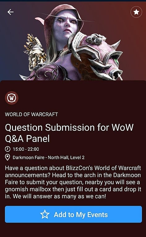 “If you scored a ticket to BlizzCon 2016 and would like to submit your question in-person, head up to the Darkmoon Faire community area on Level 3 on Friday, November 4 and look for the Warcraft mailbox. We’ll have everything you’ll need to write down your question for the devs, and if it’s selected, you’ll be given the opportunity to ask it live during the Q&A. Please note that in-person questions for the Q&A must be placed into the Warcraft mailbox before the end of the first day of BlizzCon.”