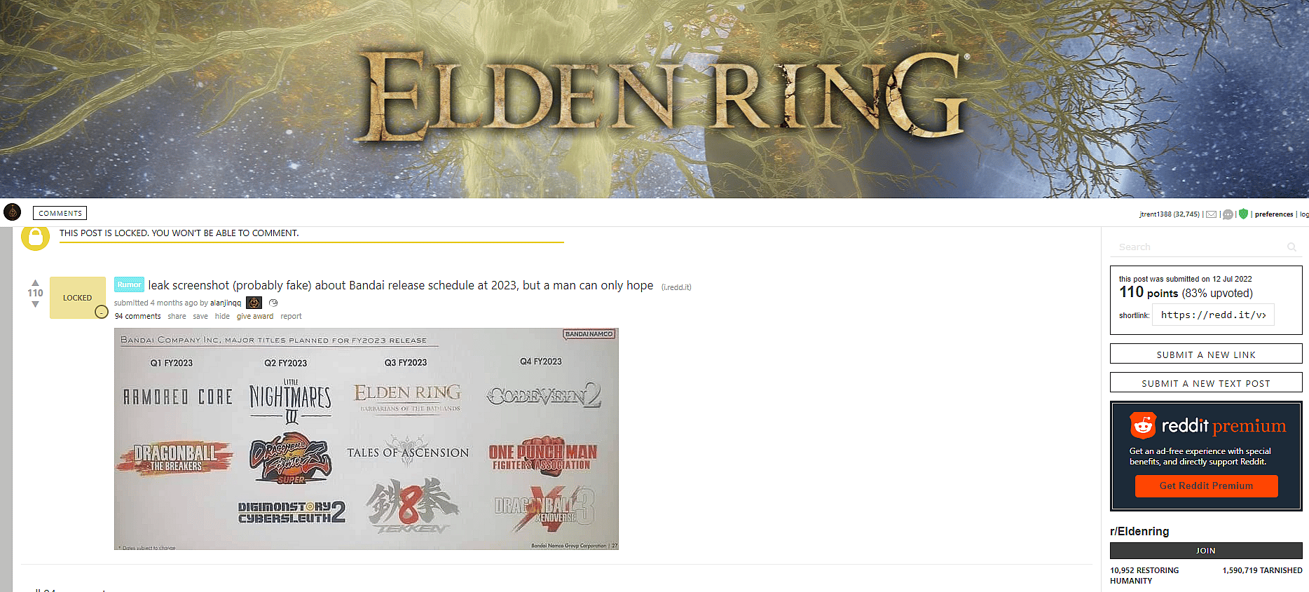 One claim that Dexerto also discussed was an alleged leak from July of this year, supposedly showing Bandai Namco’s upcoming releases for 2023, including “Elden Ring: Barbarians of the Badlands” supposedly for Q3 FY2023. While it did come shortly after Bandai Namco confirmed they had been hacked, the purported leak featured several errors and dubious claims.