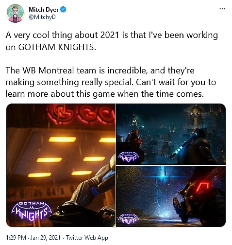 Dyer revealed his membership on the Gotham Knights narrative team on January 29th, announcing to his Twitter followers that “a very cool thing about 2021 is that I’ve been working on GOTHAM KNIGHTS.”