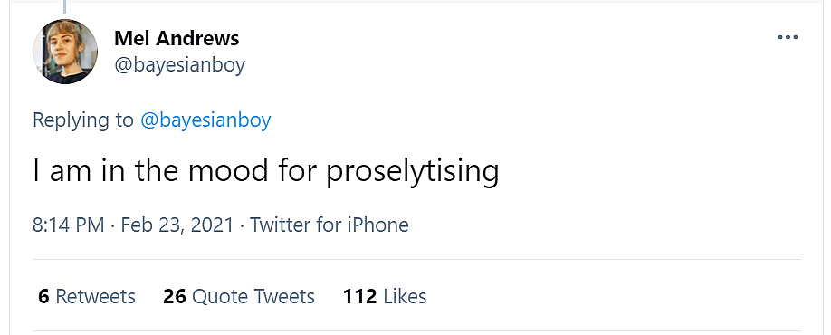 The twitter thread continued in a subsequent tweet, “I am in the mood for proselytising.”