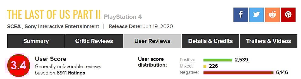 The Last of Us Part II User Score has recently been revealed.