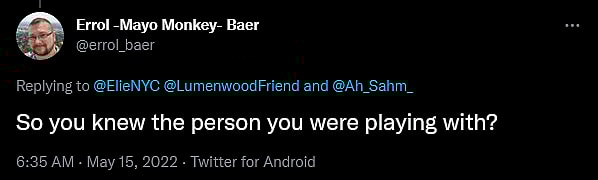 Met with a similar refutation of this argument – namely that if in order to voice chat with another player via Discord, a user must either add that individual as a friend or willingly join a shared server and enter into the same voice channel – Mystal claimed ignorance, maintaining that he did not know the racial epithet-screaming player he had supposedly been matched up against.