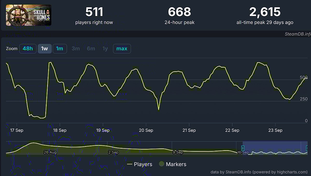 Meanwhile, Skull and Bones’s was released with a $70 price point – not to mention whatever a player may end up spending via microtransactions. Ubisoft CEO Yves Guillemot defended the high asking price by claiming that the title was the world’s first ‘Quadruple-A’ game. However, players weren’t buying his blatant marketing lies, and in turn the game burned out on Steam with a disastrous peak concurrent player count of just over 2,600 pirates.
