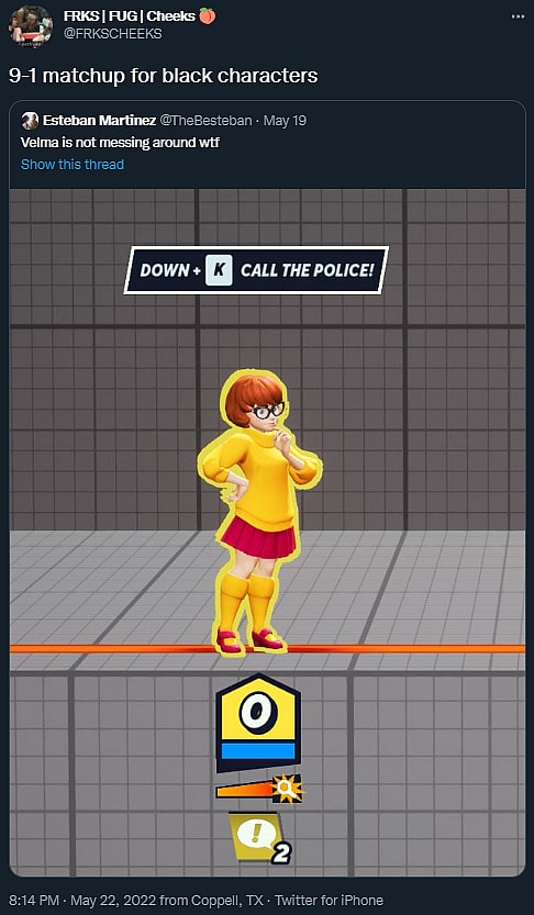 Others called it a “white woman move,” or joked the move would be more effective against black characters. Others instead opted for those accused of a crime, such as characters in the game due to their actions in their respective shows (or even in-game for assaulting Velma), or certain fighting game communities due to prior cases of sexual abuse and harassment by prominent or infamous players.