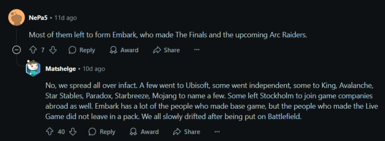 Holm did confess to another user that getting Brännvall back would be difficult, as he’d “moved up north.” Holm did temper expectations for fans. In another thread, Holm corrected the claim most of the developers had gone to Embark.