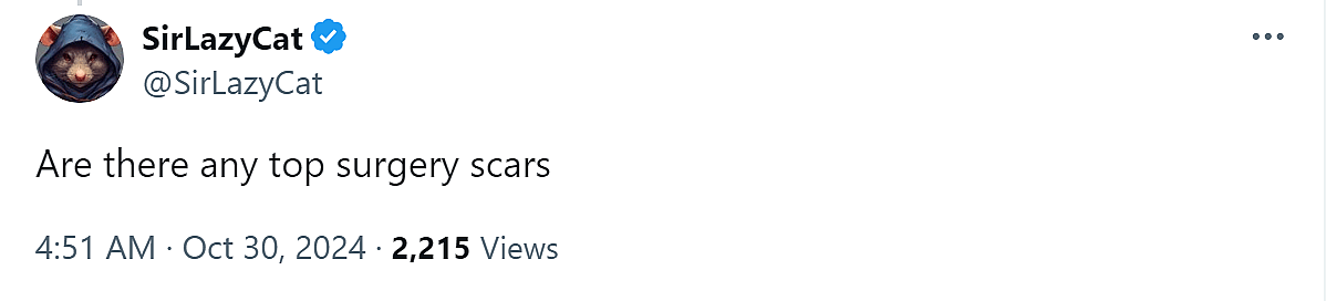 In the light of the recent Dragon Age: The Veilguard‘s more ‘inclusive’ customization options, @SirLazyCat sarcastically questioned, “Are there any top surgery scars”.