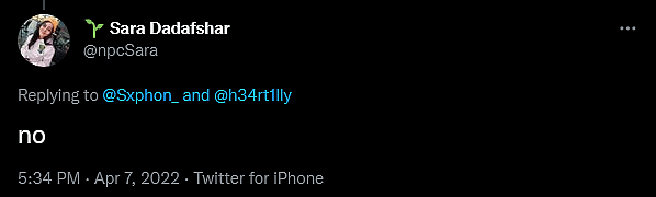 Later, when asked by another player if she would unban Speed, particularly in the wake of his apology, Dadafshar simply replied “no.”